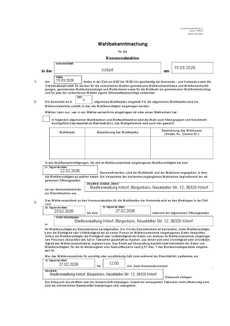 Kommunalwahlen am 15.03.2026 in Kirtorf