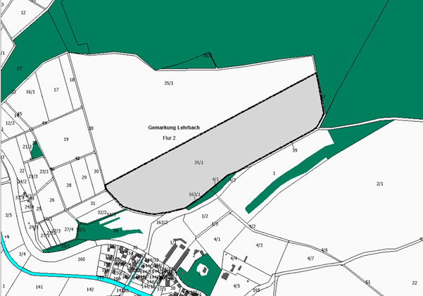 Der geplante, ca. 12,5 ha große Geltungsbereich nördlich des Stadtteils Lehrbach umfasst eine südliche Teilfläche von Flurstück. 35/1 in der Flur 2 der Gemarkung Lehrbach. Der Geltungsbereich ist der angehängten Übersichtskarte zu entnehmen.